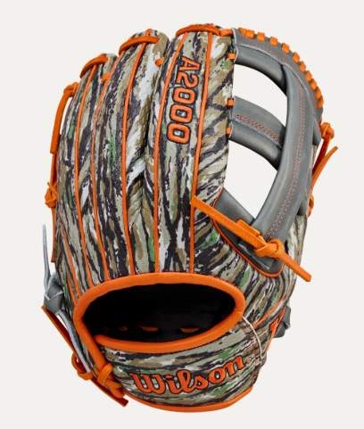 Gunnar Henderson’s infield glove design with Realtree Original® Camo SuperSnakeSkin™ for lightweight performance.